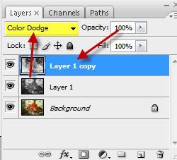 Ubah layer efek menjadi Color Dodge di layer yang udah di-Invert.